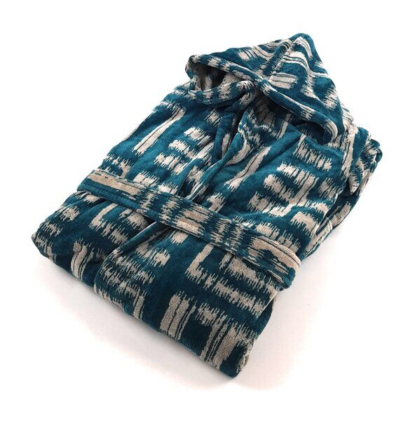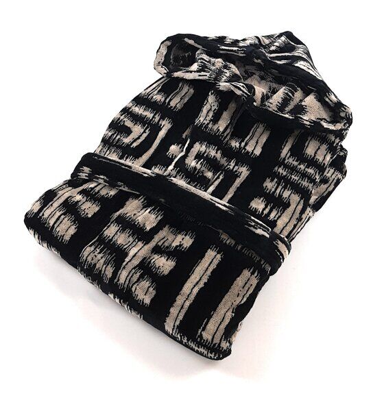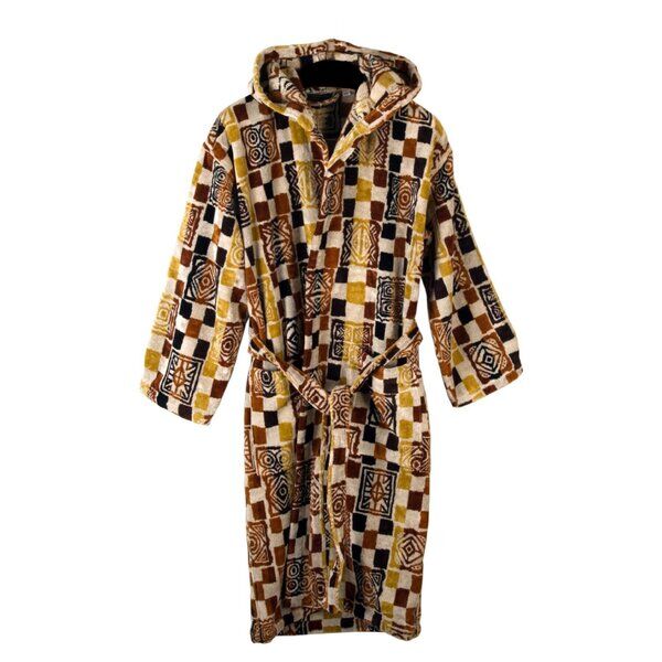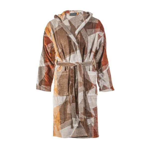 Scopri l'accappatoio gessato con cappuccio in spugna di cotone, disponibile nel colore Nocciola. Perfetto per un comfort assoluto dopo la doccia o il bagno.