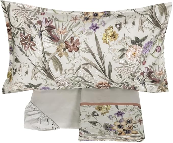 completo lenzuolo in raso 300TC di puro cotone tinto e sovrastampato