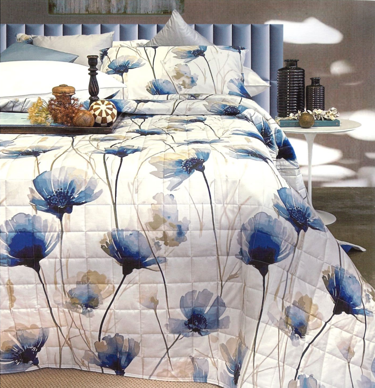 Copriletto matrimoniale trapuntato con stampa all-over.