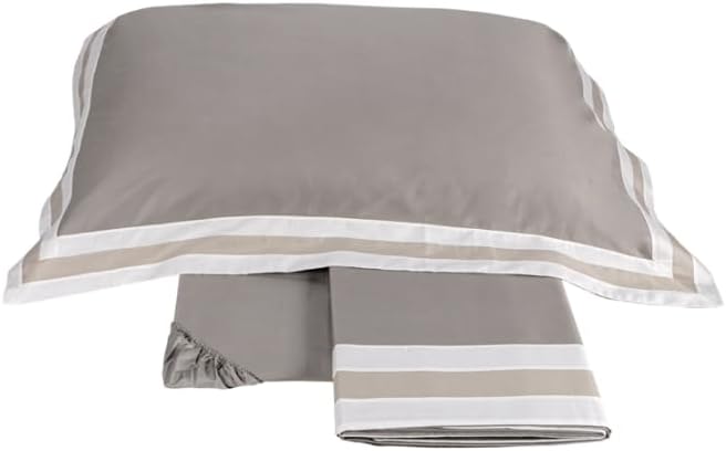 Completo lenzuola matrimoniale in raso 300TC tinto e sovrastampato.